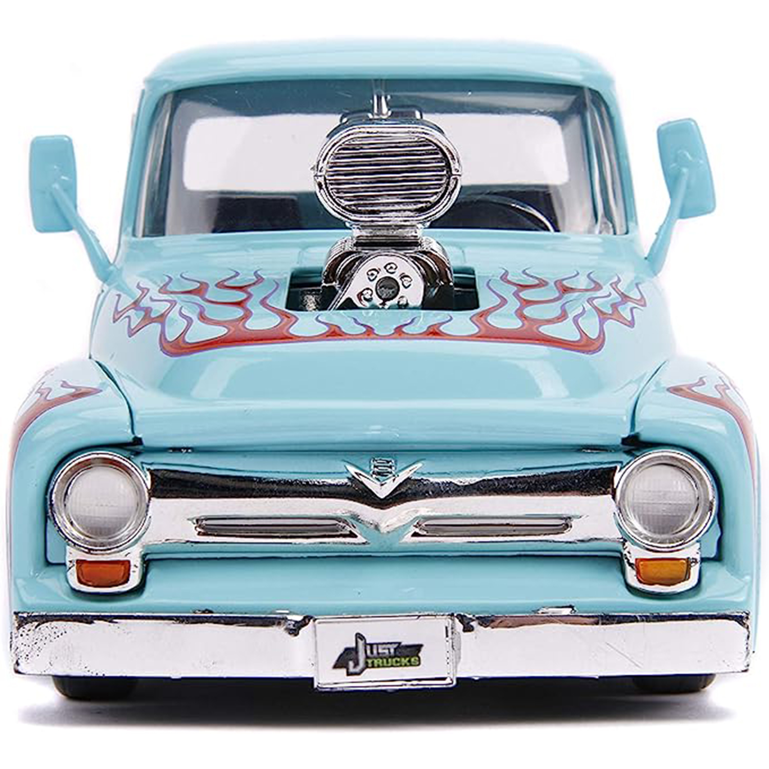 ماکت ماشین جادا مدل فلزی 1956 Ford F-100 Hot Rod Pickup with Extra Wheels Rack ‏ | سبز آبی | گارانتی اصالت و سلامت فیزیکی کالا